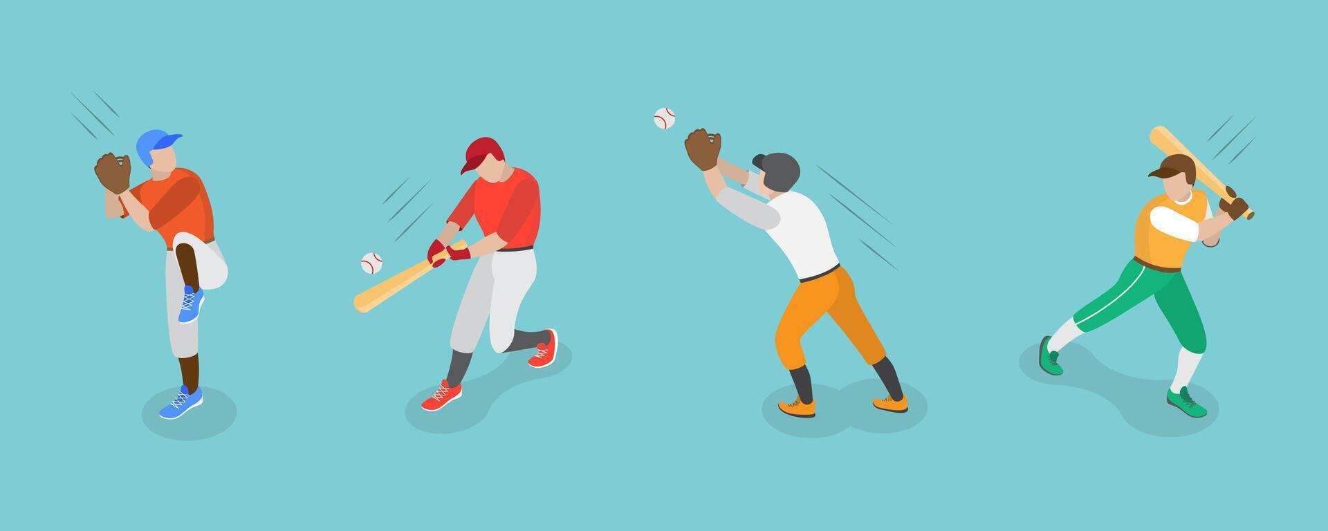 3D Isometric Flat Set of Baseball Players, Various Actions of Player Character Pro Vector