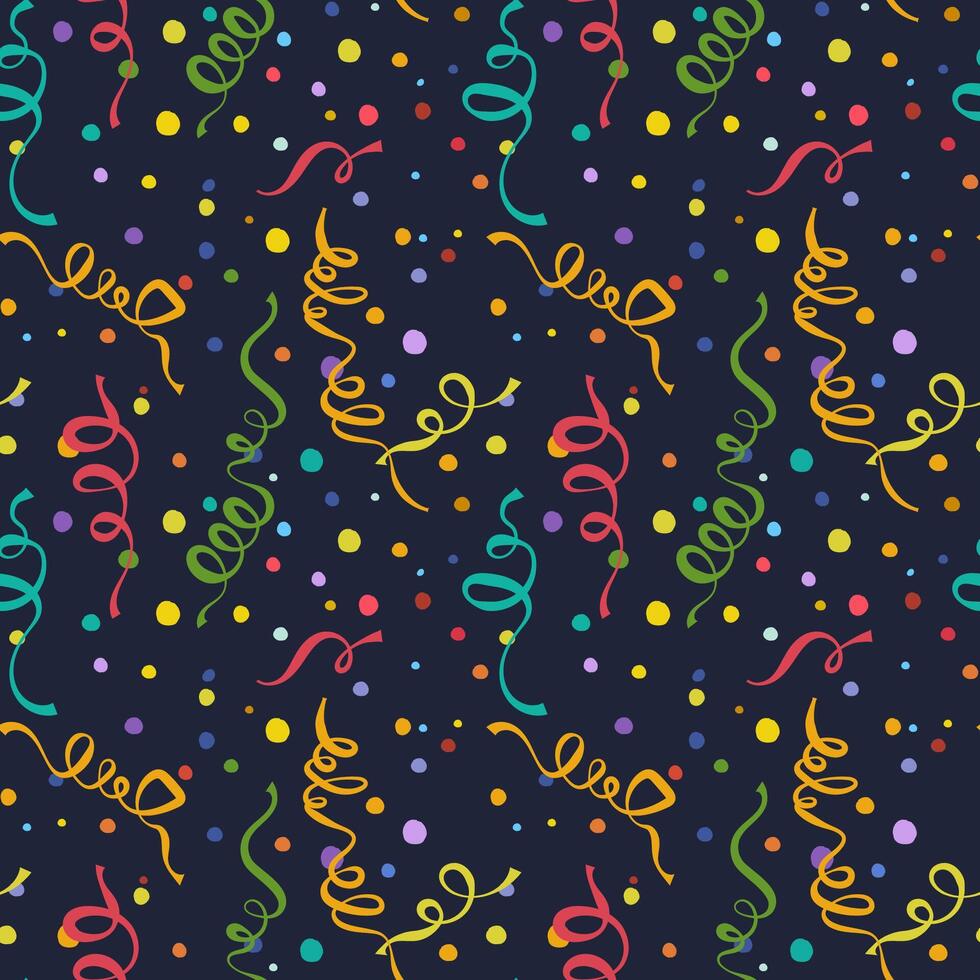 Hand drawn seamless pattern with confetty. Colourful simple illustration on dark background. Abstract backdrop. Pro Vector