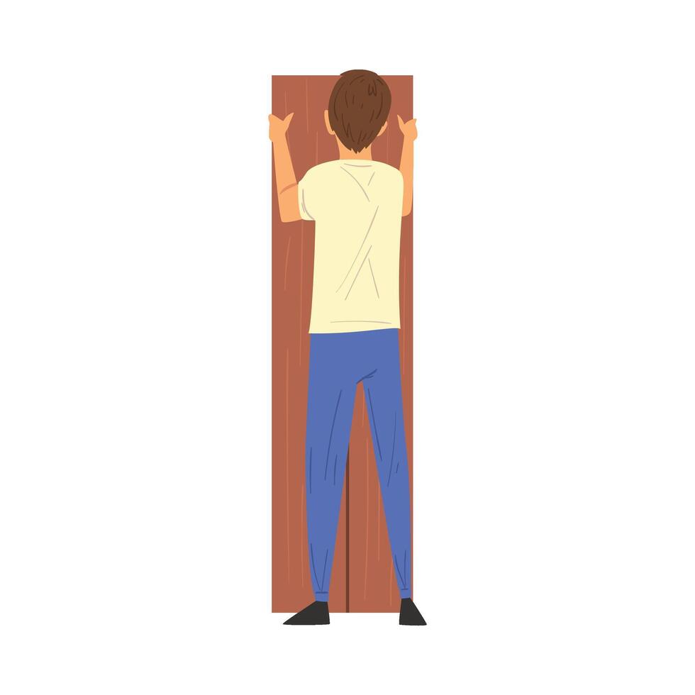 Man Assembling and Installing New Furniture, View From Behind, Manual Furniture Assembly Illustration Pro Vector