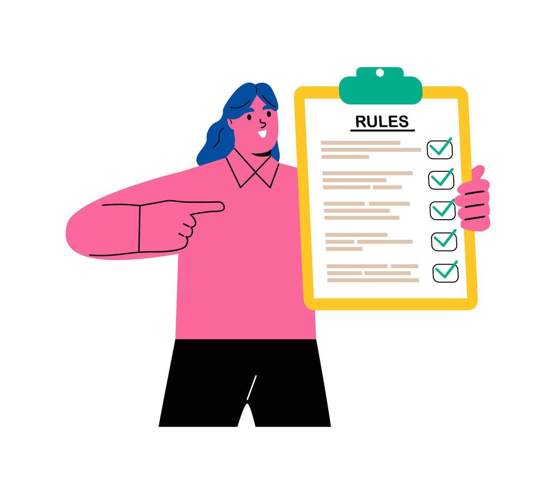 Business list of rules reading guidance making checklist. Flat illustration isolated on white background Pro Vector