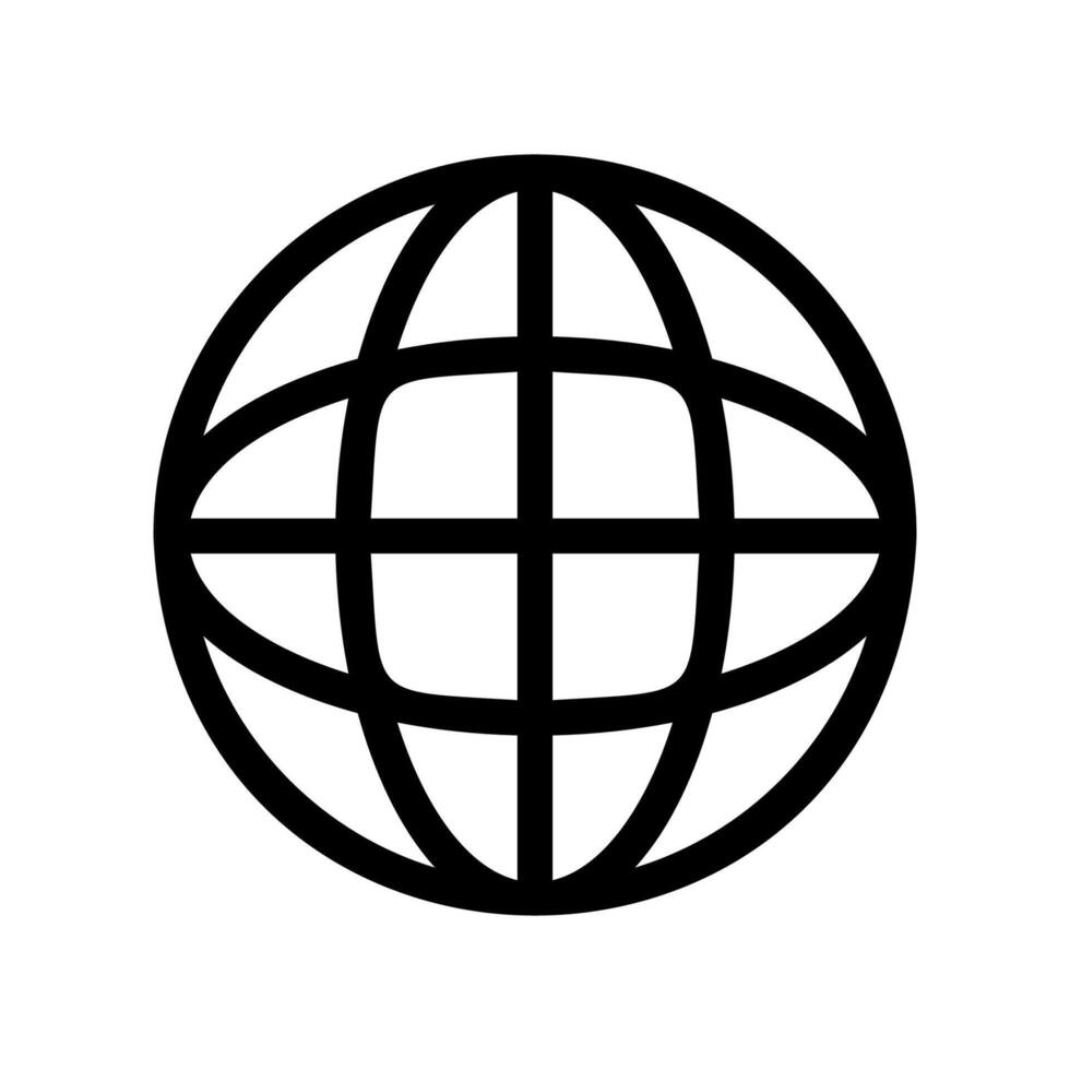 Black wireframe earth globe icon often used for language selection menu Pro Vector