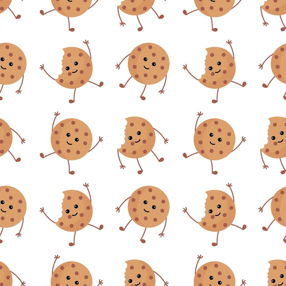 seamless pattern of cookie illustrations with smiling faces Pro Vector