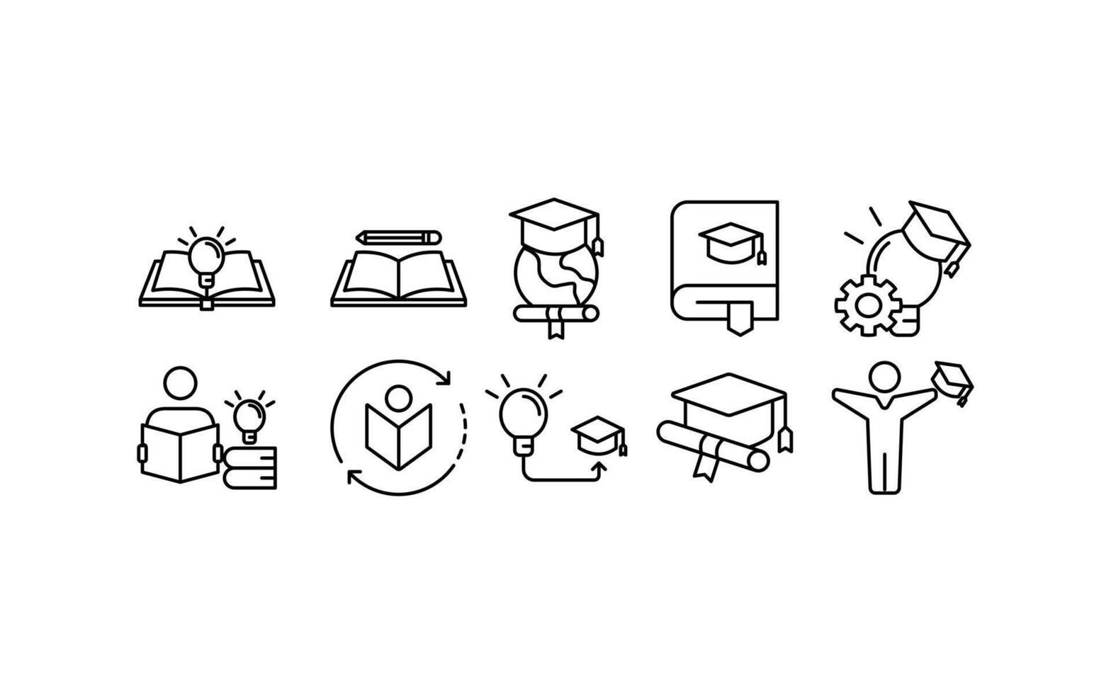 icon Intelligent knowledge empowers students with nine educationrelated line drawings. Ideal for educational materials, presentations, and digital resources. Pro Vector