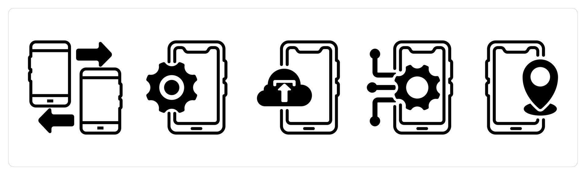 A set of five business icons as mobile data transfer, mobile option, mobile data backup Pro Vector