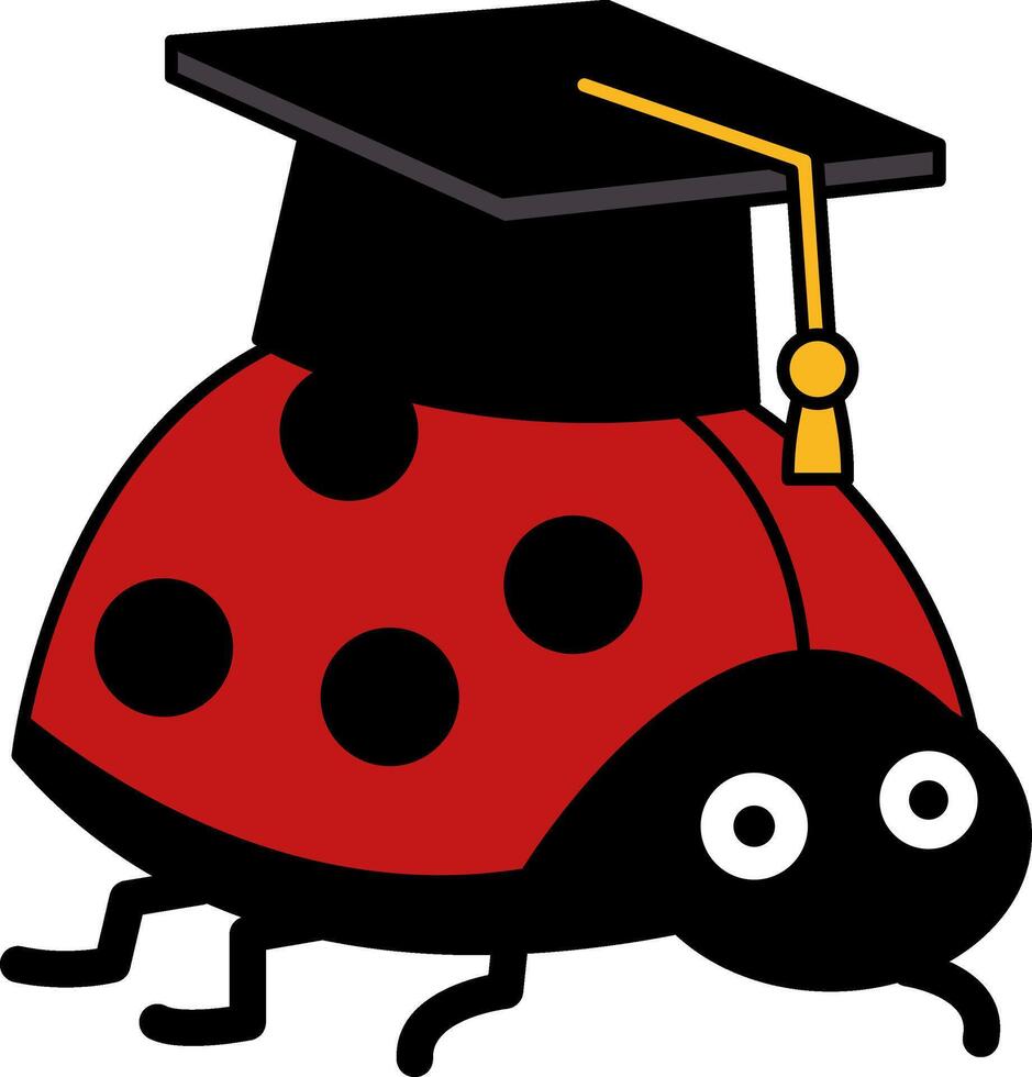 isolate illustration of Ladybug with graduation cap on back Pro Vector