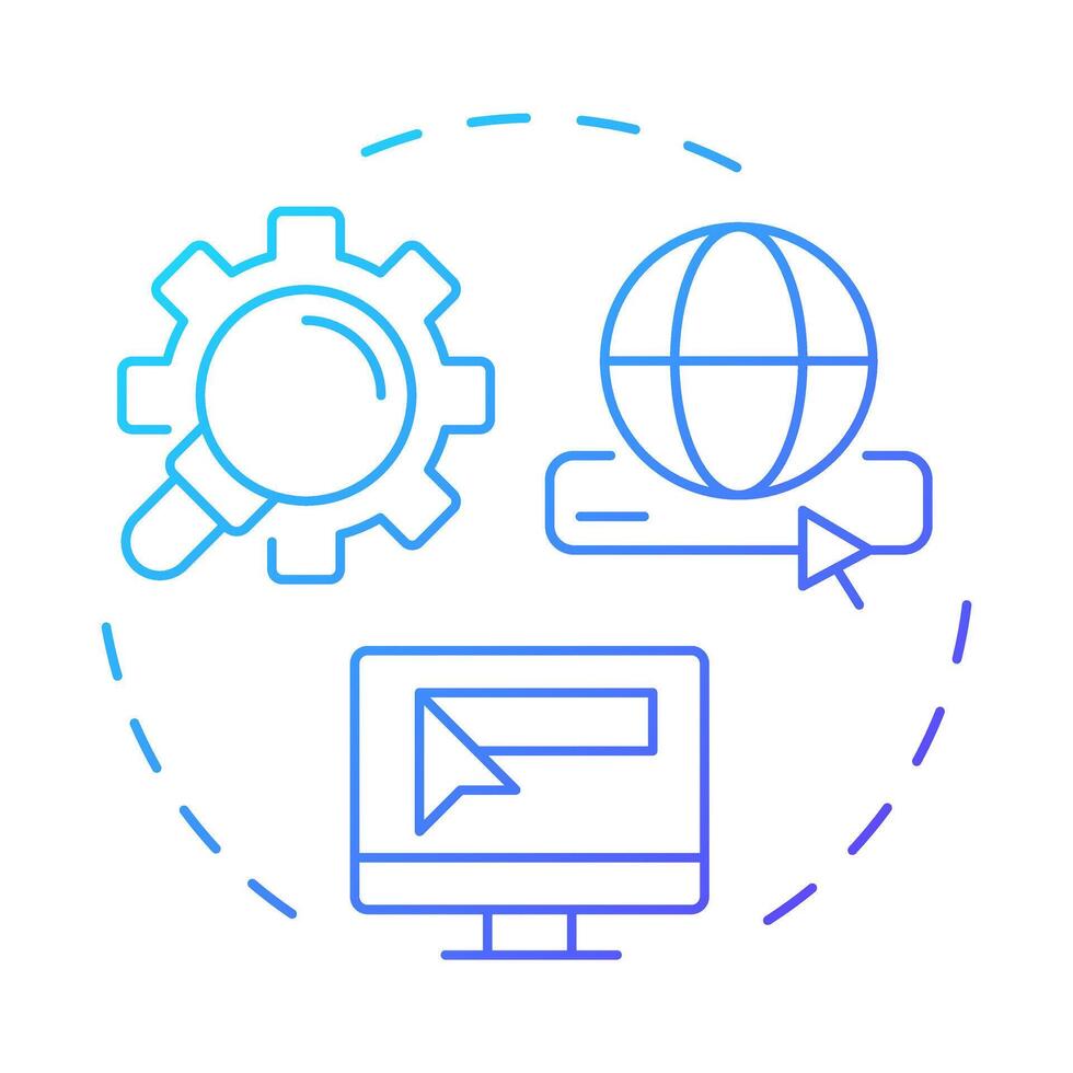 Discoverable blue gradient concept icon. Easy to find and index information. Characteristic of PWAs. Round shape line illustration. Abstract idea. Graphic design. Easy to use in presentation Pro Vector