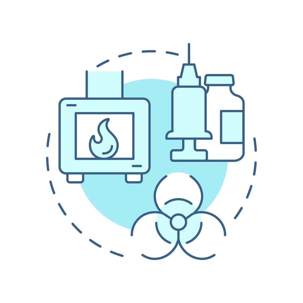 Incineration soft blue concept icon. Medical garbage. Biomedical waste disposal. Biohazard, risk. Round shape line illustration. Abstract idea. Graphic design. Easy to use in presentation Pro Vector