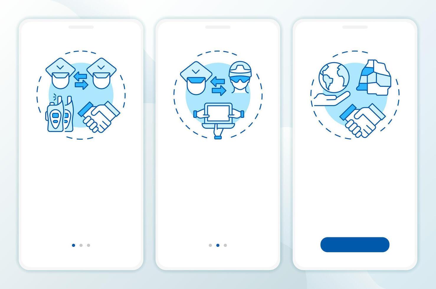 Levels of cooperation blue onboarding mobile app screen. IBM system. Walkthrough 3 steps editable graphic instructions with linear concepts. UI, UX, GUI Pro Vector