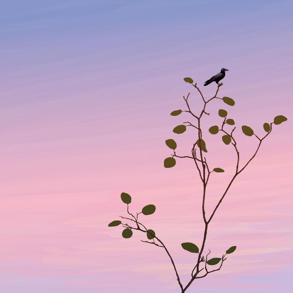 Silhouette of a crow perched on a tree branch have twilight sky square background graphic illustration have blank space. Pro Vector