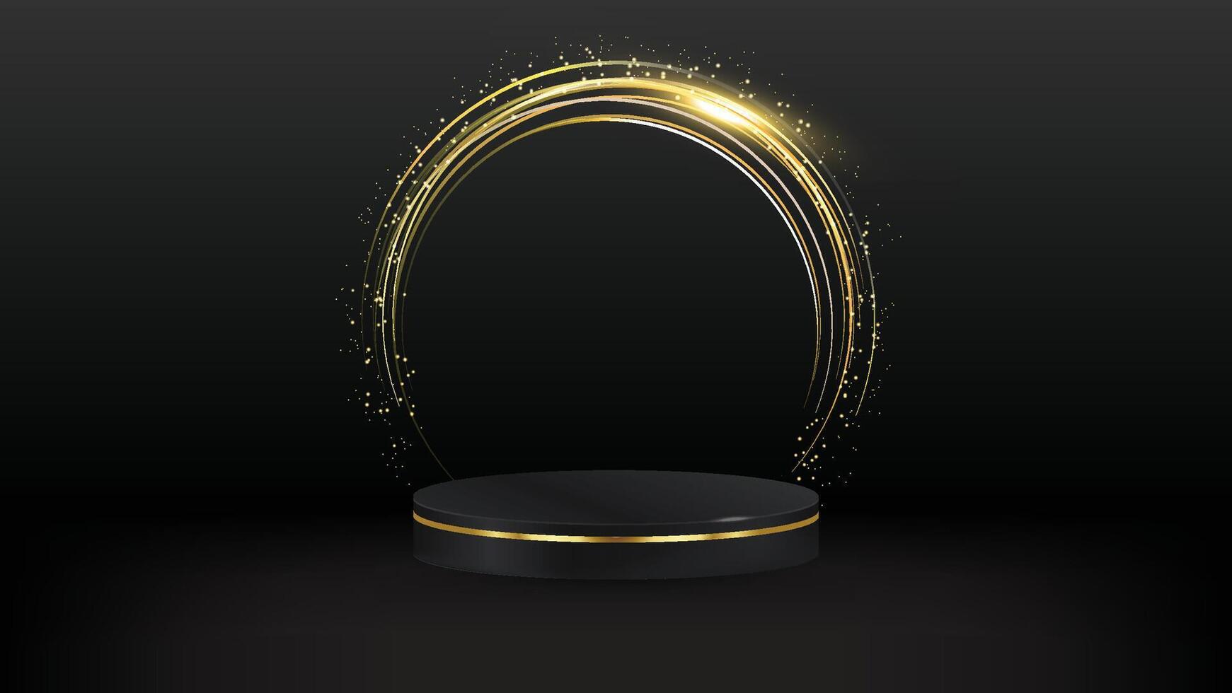 Black and gold podium on black background, geometry podium shape for display product display presentation. abstract vectors platform Pro Vector