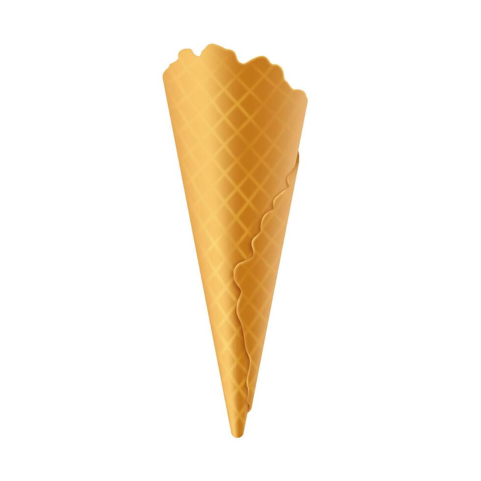 Detailed image showing a crisp empty waffle cone ideal for ice cream desserts or snacks graphic representation on clean white background. Pro Vector