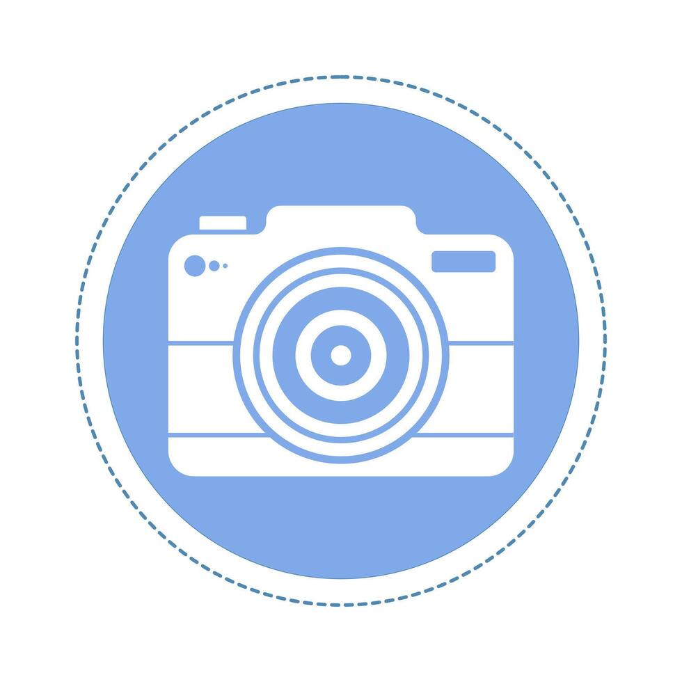 Circular button concept with camera silhouette, representing the function to add a photo in the blank field. Simple UI icon to upload an image, photo or attachment in the app. design illustration Pro Vector