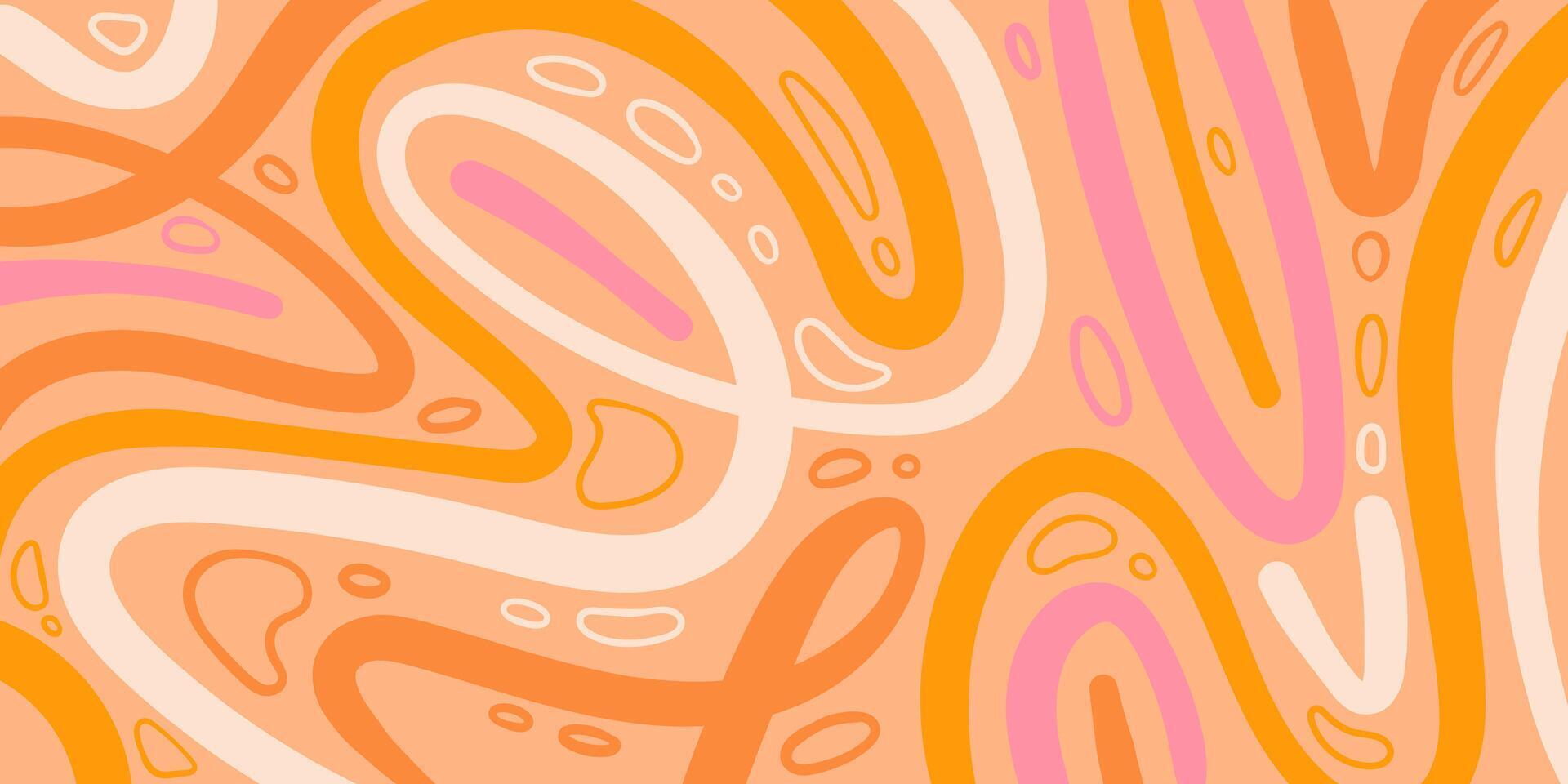 Abstract Background with Wavy Lines and Creative Loops. Decorative groovy fluid lines isolated on yellow background. Hand drawn geometric bulky lines. Hippie banner Pro Vector