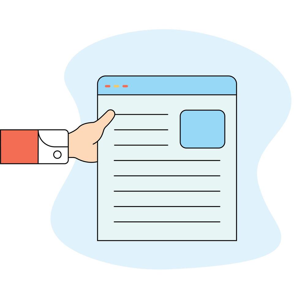 Clean and simple illustration showing a hand holding a web document perfect for digital notes content sharing presentations web design and creative communication concepts Pro Vector