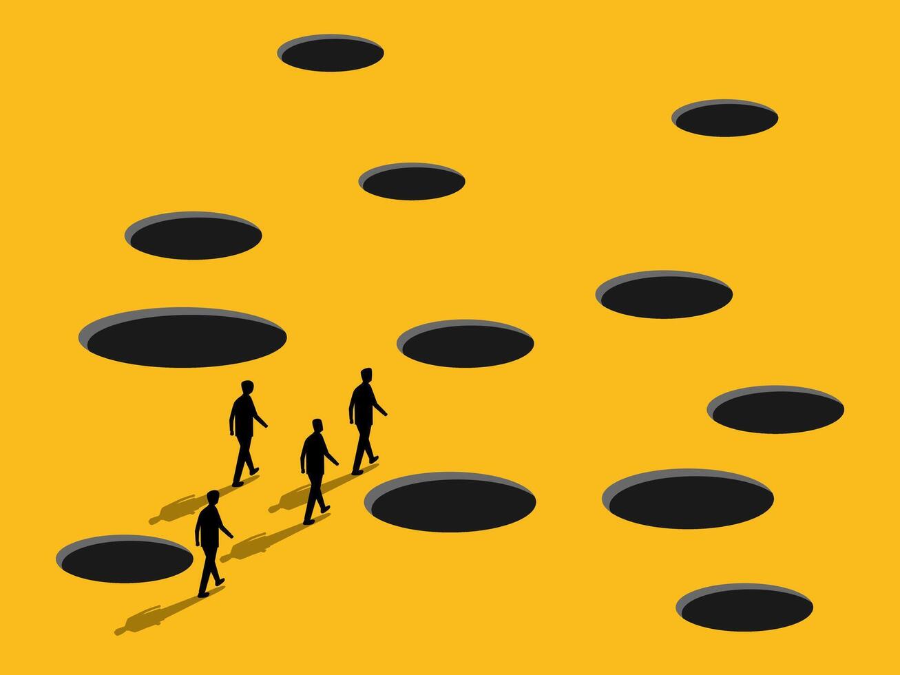 Avoid Risk, Business Team Leader Leads a Walk to Avoid Pitfalls Pro Vector