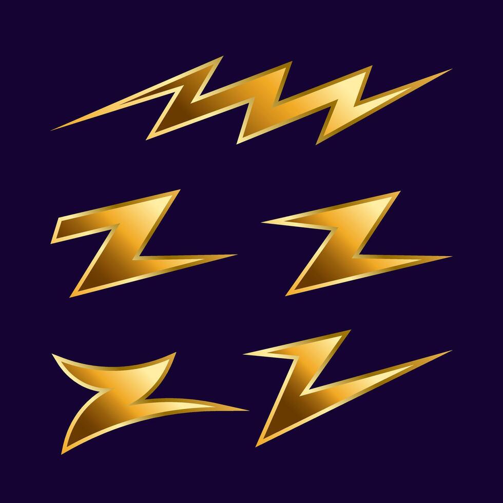 Dynamic golden lightning collection with creative geometric shapes on isolated background Pro Vector