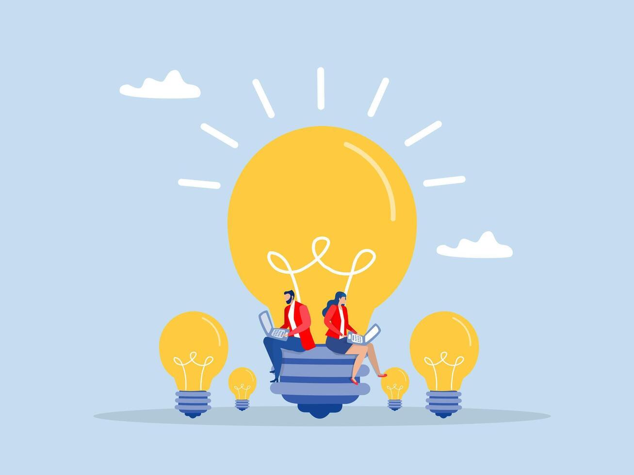 Creative idea to solve work problem Entrepreneur solution,smart businessman working with computer laptop on bright light bulb idea success discover new innovation concept Pro Vector