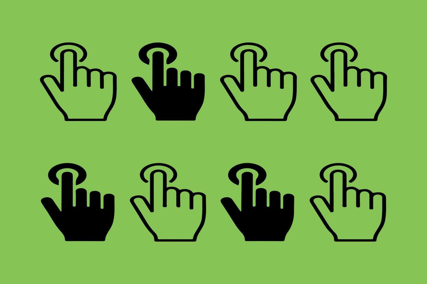 A symmetrical row of hands with index fingers poised to touch, in a simple and modern black and white design. Pro Vector