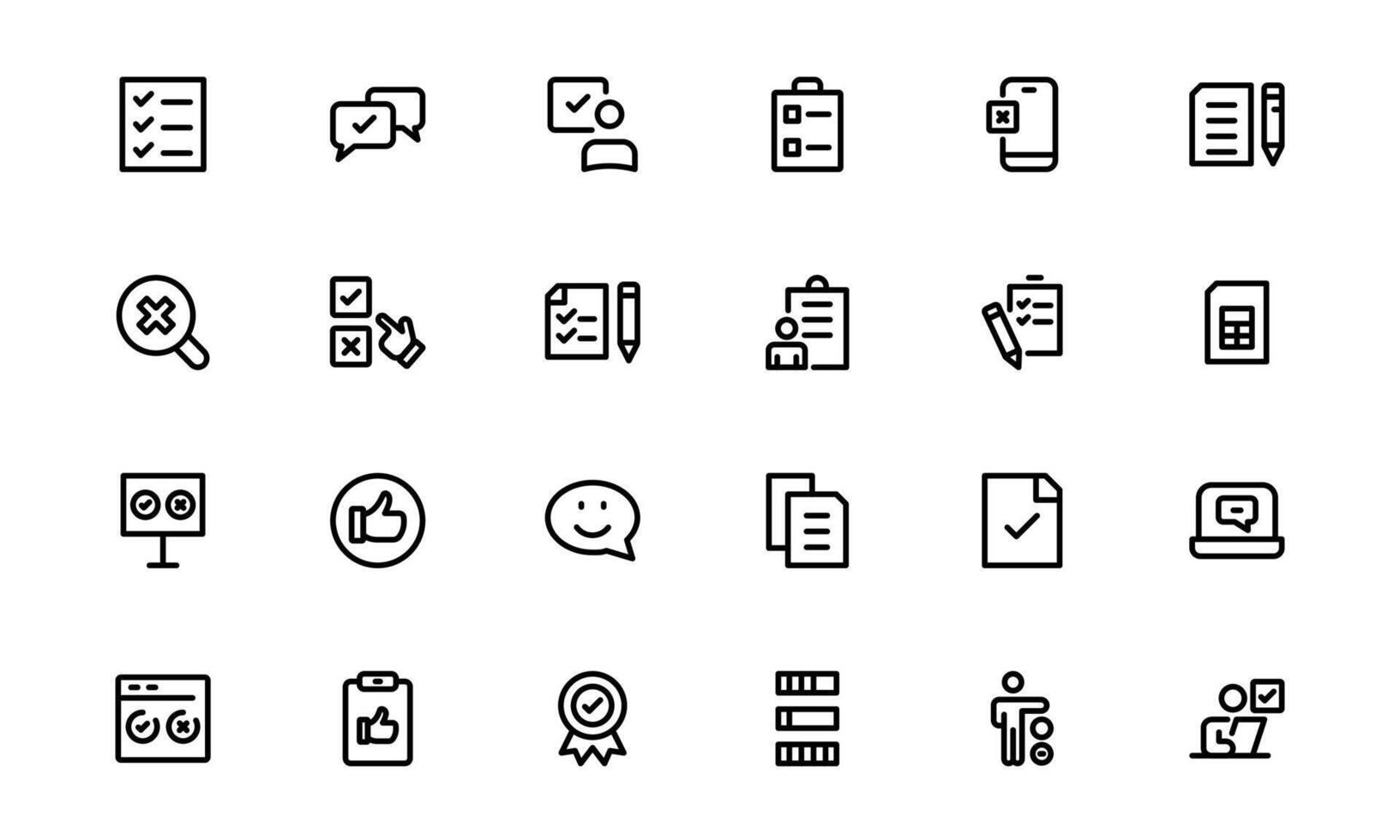 Premium Survey Icons bundle. Clean, Editable Vectors for Data Collection, Market Research, Customer Feedback, and Polling Applications. Pro Vector
