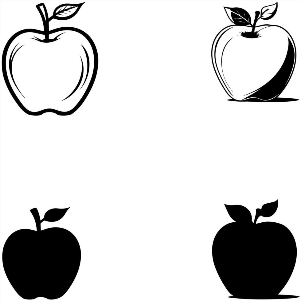 Apple Fruit Graphics Outline and Solid Shape Perfect for Design Projects and Crafts Pro Vector