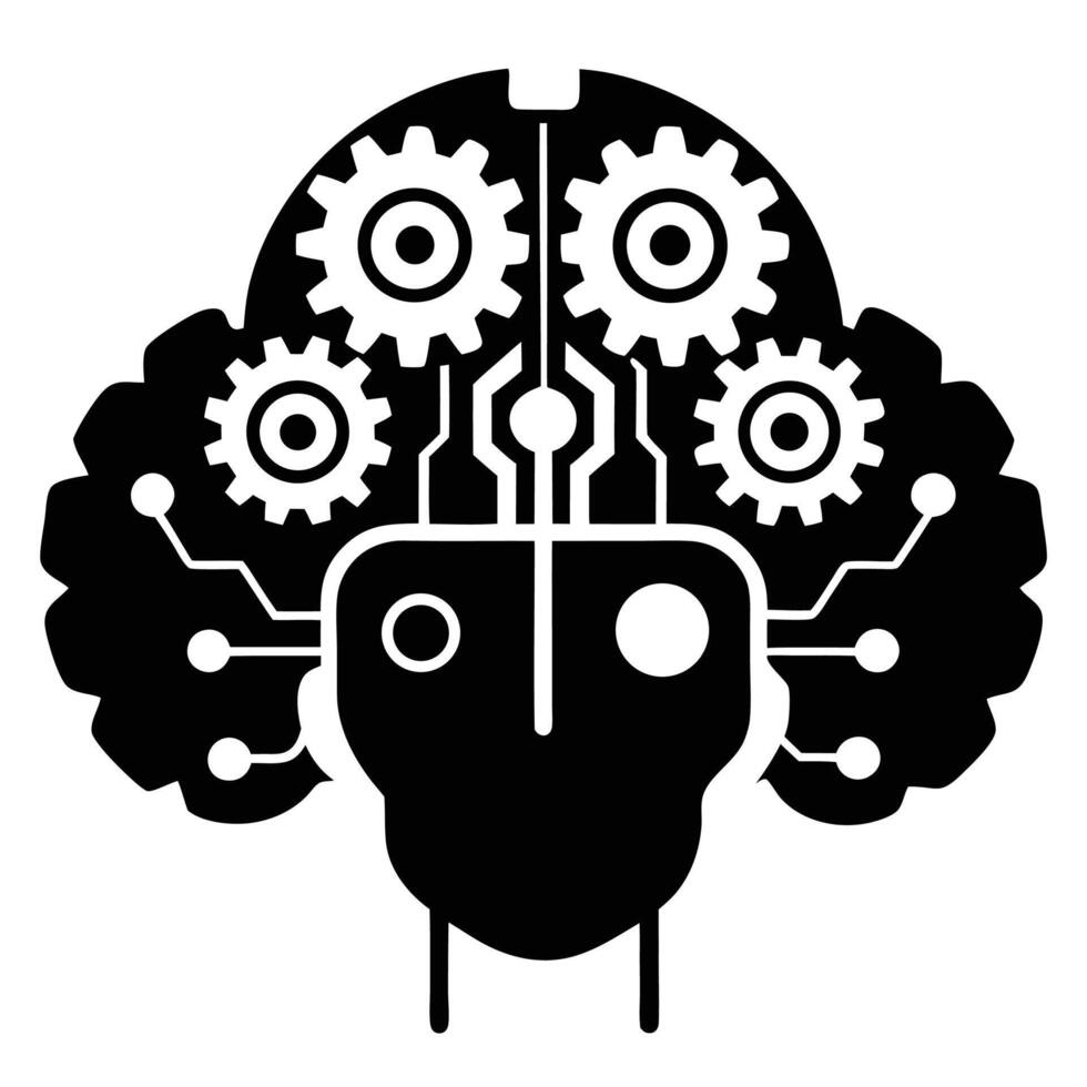 Robotic brain silhouette with gears symbolizing AI, machine learning, and futuristic automation vector