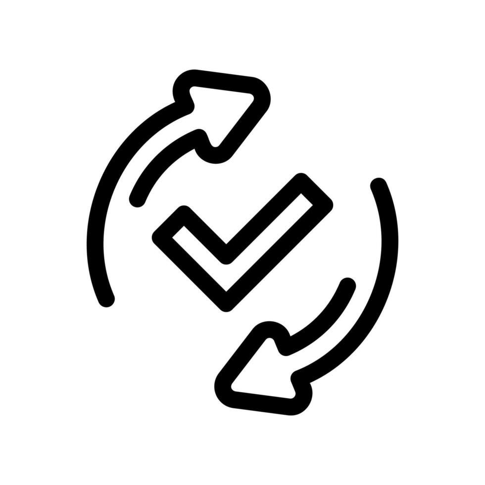 Line icon combining circular arrows for refresh sync with a checkmark indicating completion or success Pro Vector