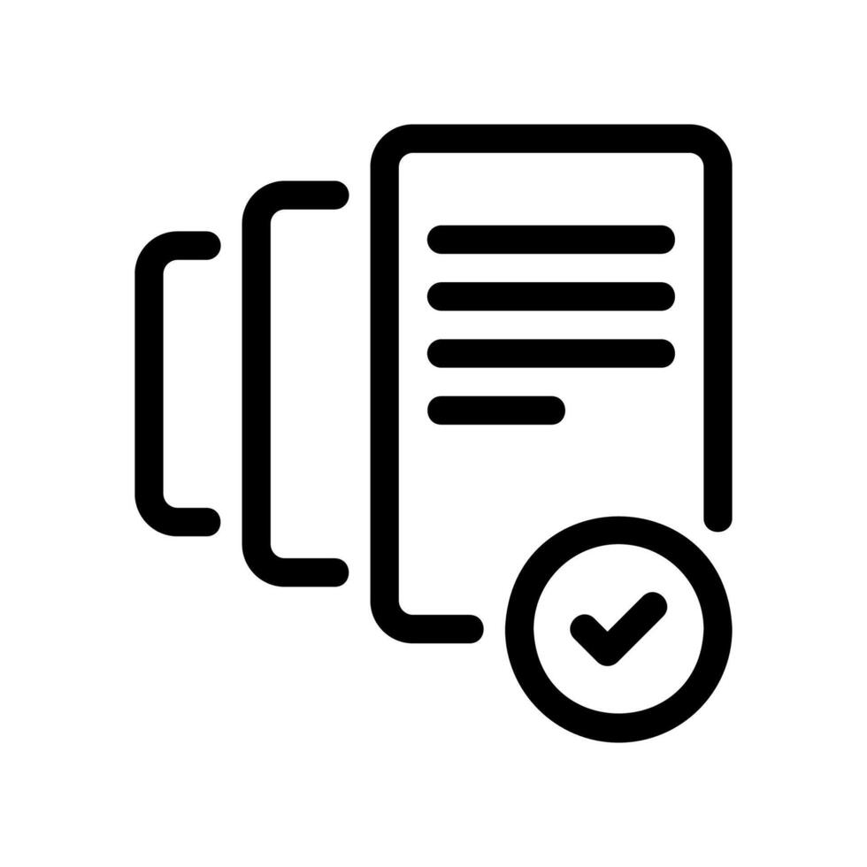 Outline document stack or tab with checkmark indicating batch approval verification Pro Vector