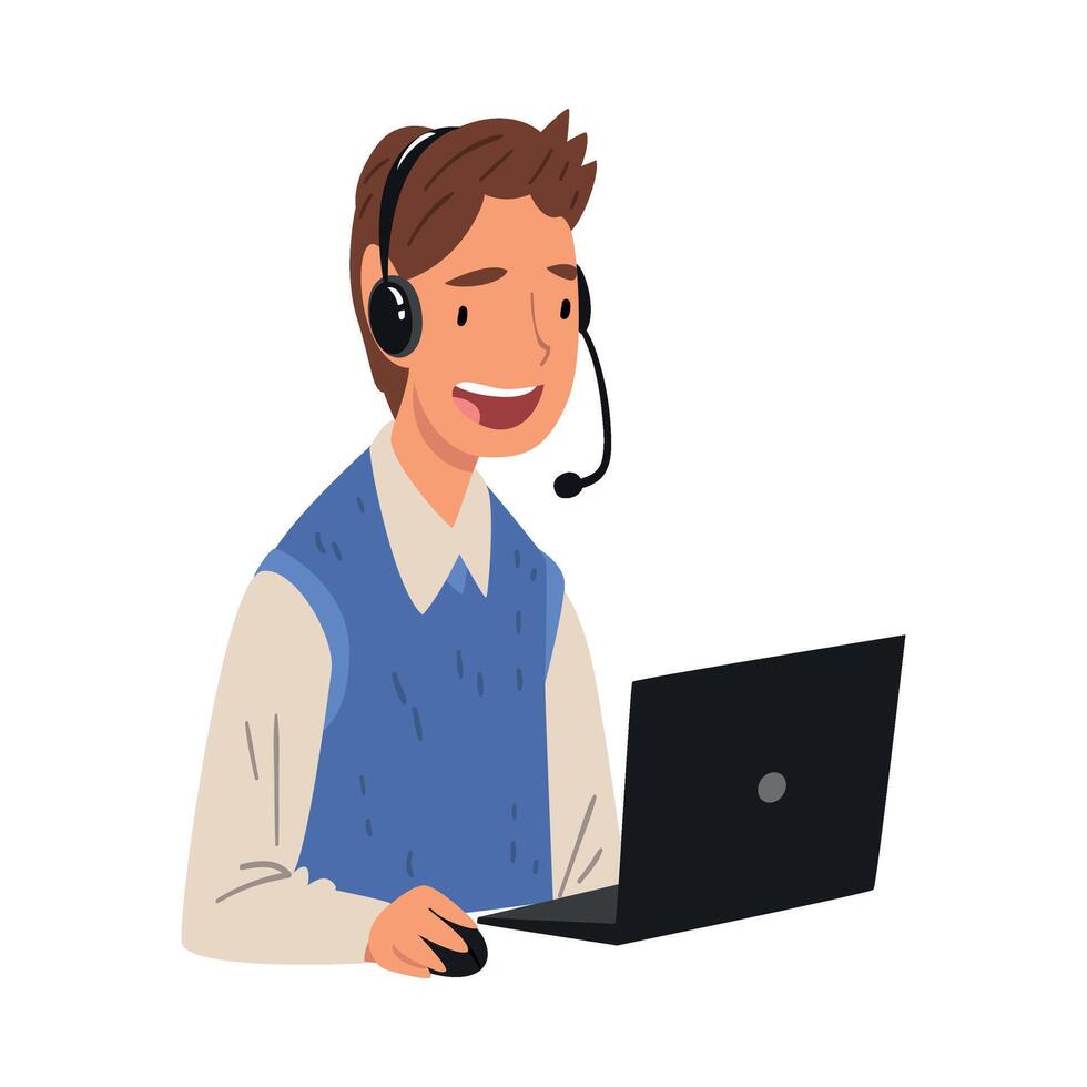 Smiling Male Call Center Operator, Online Customer Support Service Assistant with Headset Consulting Client, Help Desk, Technical Support Illustration Pro Vector