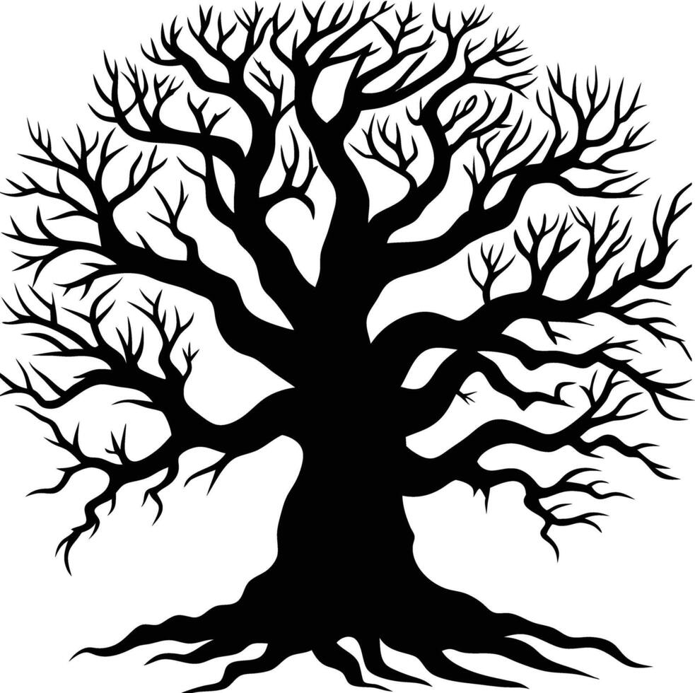 Detailed of an old tree without leaves showing complex branching pattern black silhouette suitable for themes like nature mystery or Halloween style project Pro Vector