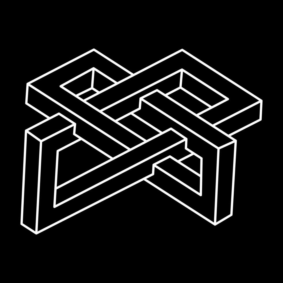 Impossible shape. Sacred geometry. Optical illusion. Abstract eternal geometric object. Impossible endless outline. Line art. Optical art. Impossible geometry shape on a black background. Pro Vector