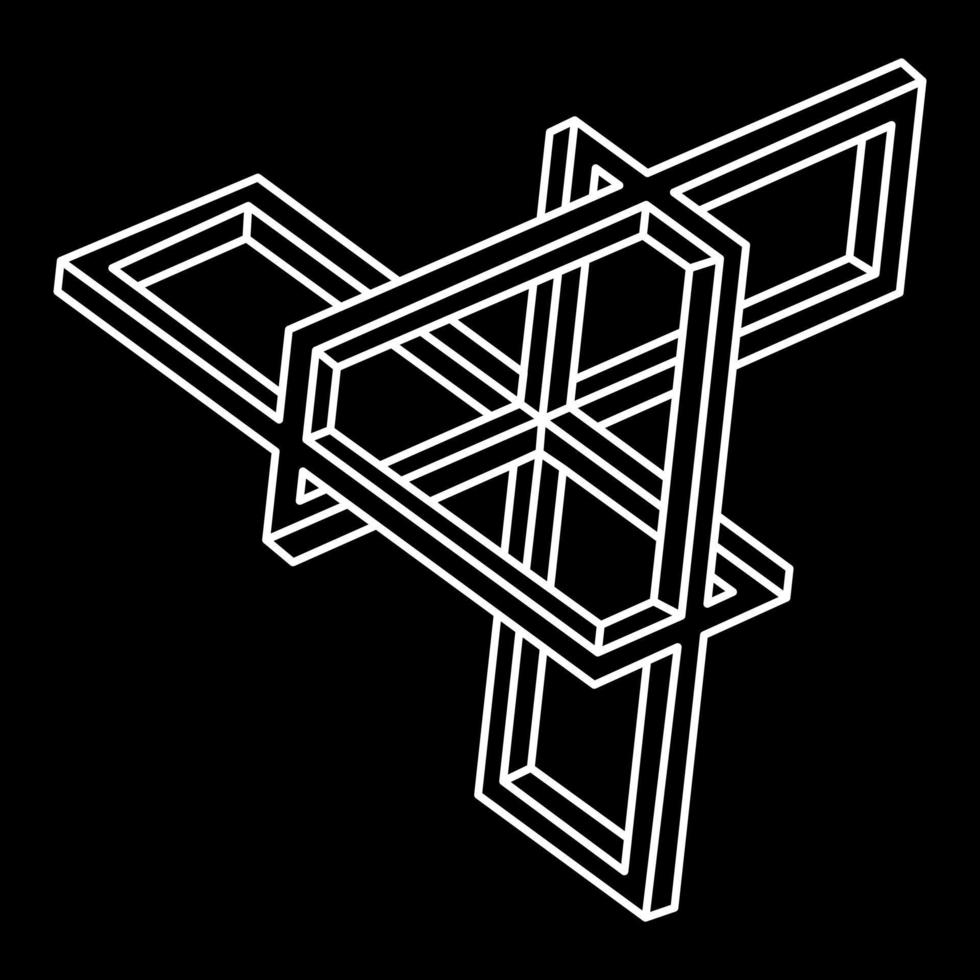 Impossible shapes. Sacred geometry. Optical illusion. Abstract eternal geometric object. Impossible endless outline. Line art. Op art. Impossible shape on a black background. Unreal geometric figures. Pro Vector