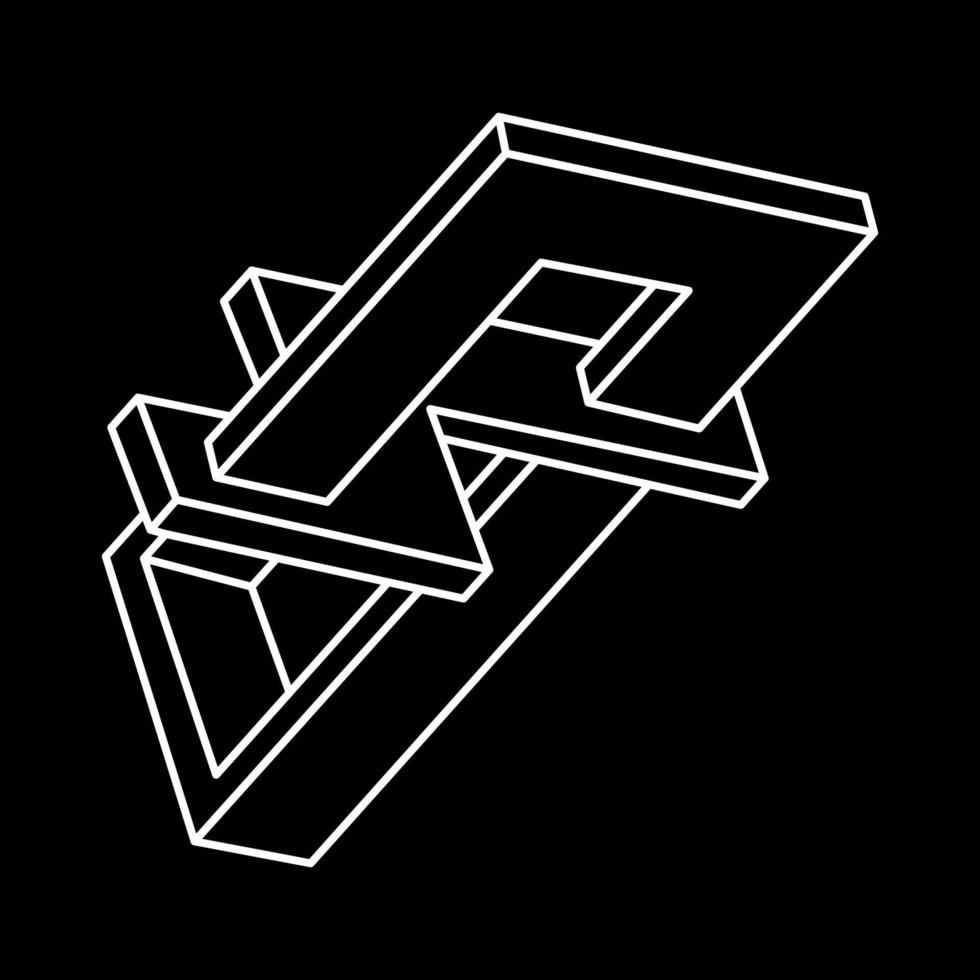 Impossible shapes. Sacred geometry. Optical illusion. Abstract eternal geometric object. Impossible endless outline. Line art. Op art. Impossible geometry shape on a black background. Pro Vector