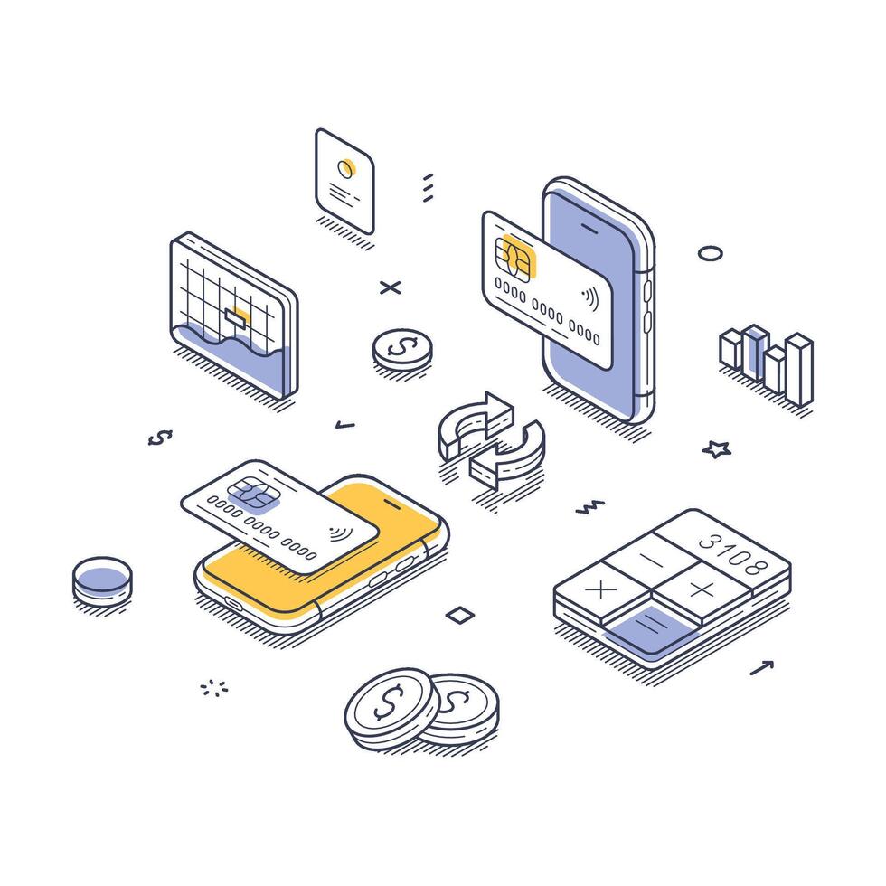 Modern illustration of digital finance concepts with mobile payments and data analytics Pro Vector