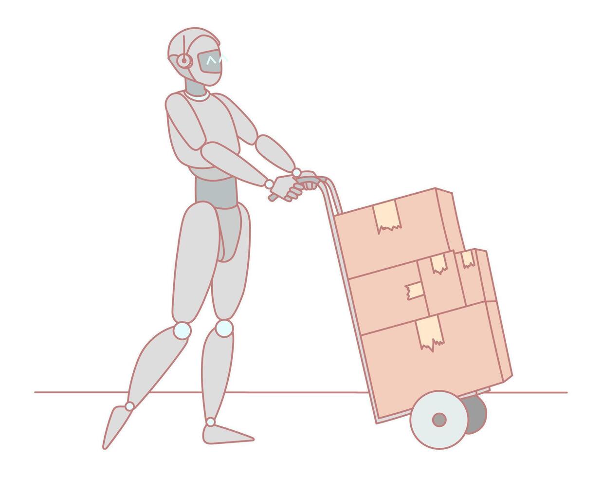 Robotic Assistant Efficiently Moving Packages on a Trolley for Streamlined Delivery Operations Pro Vector