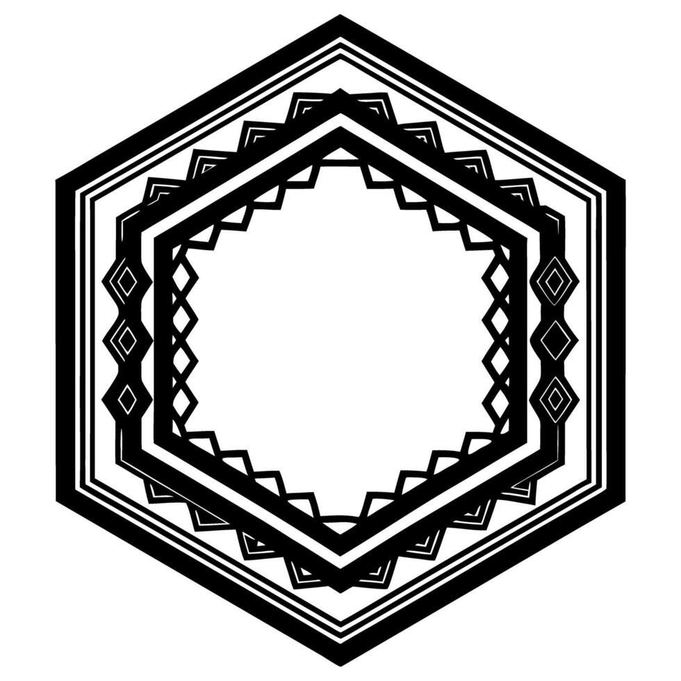 Intricate geometric frame design with hexagonal pattern in black and white Pro Vector
