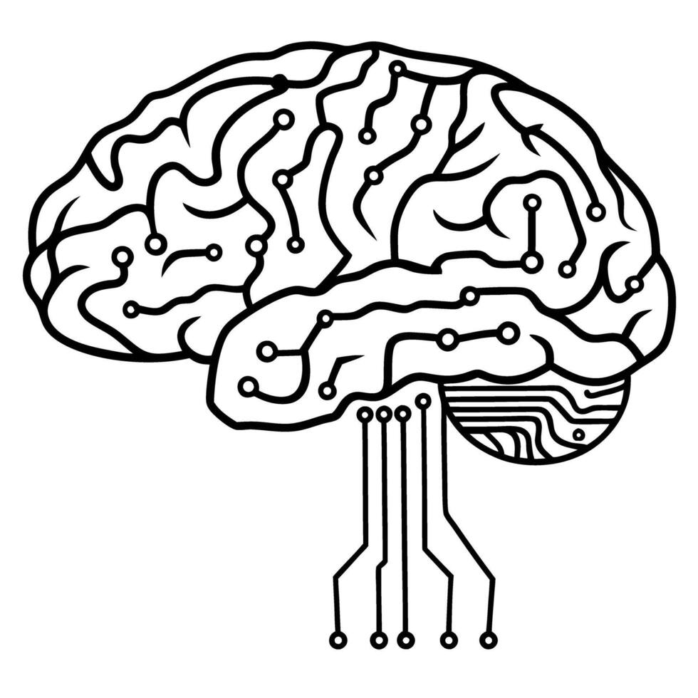 Futuristic brain with circuit pattern illustrating ai and neural connections Pro Vector