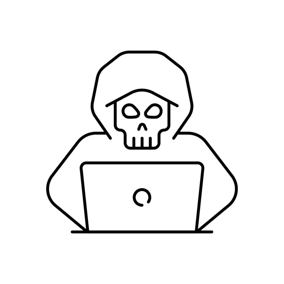 Hacker outline icon. Hacker with hoodie and a laptop. Cyber, computer crime and virus icon. Pro Vector