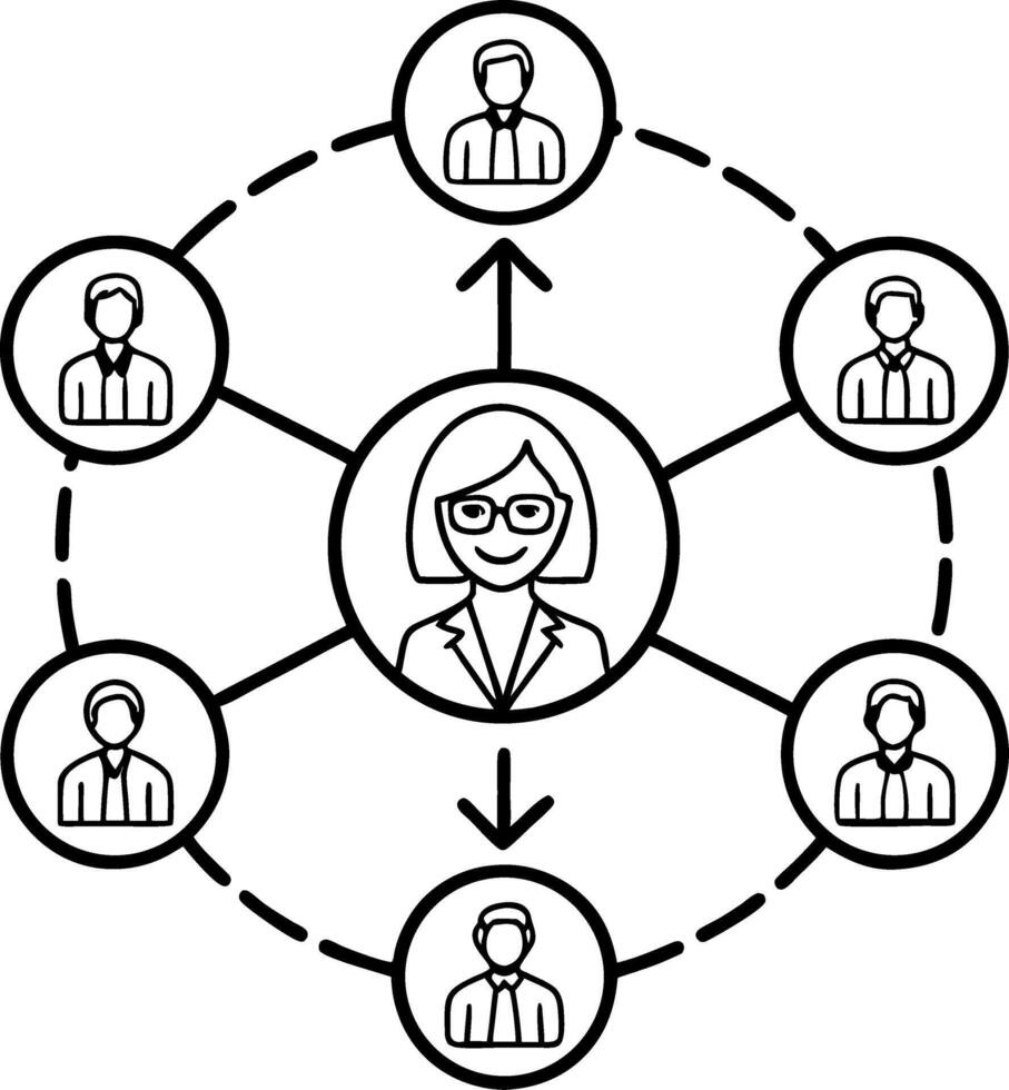 Business Networking Diagram Featuring Central Leader with Connected Team Members for Collaboration Pro Vector
