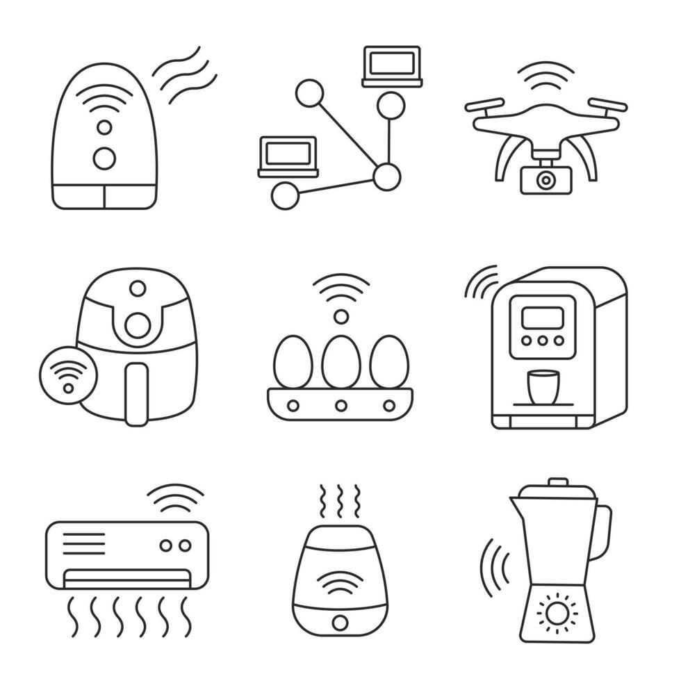 Smart technology line icon set with wireless connectivity, IoT automation, and modern digital devices. Pro Vector
