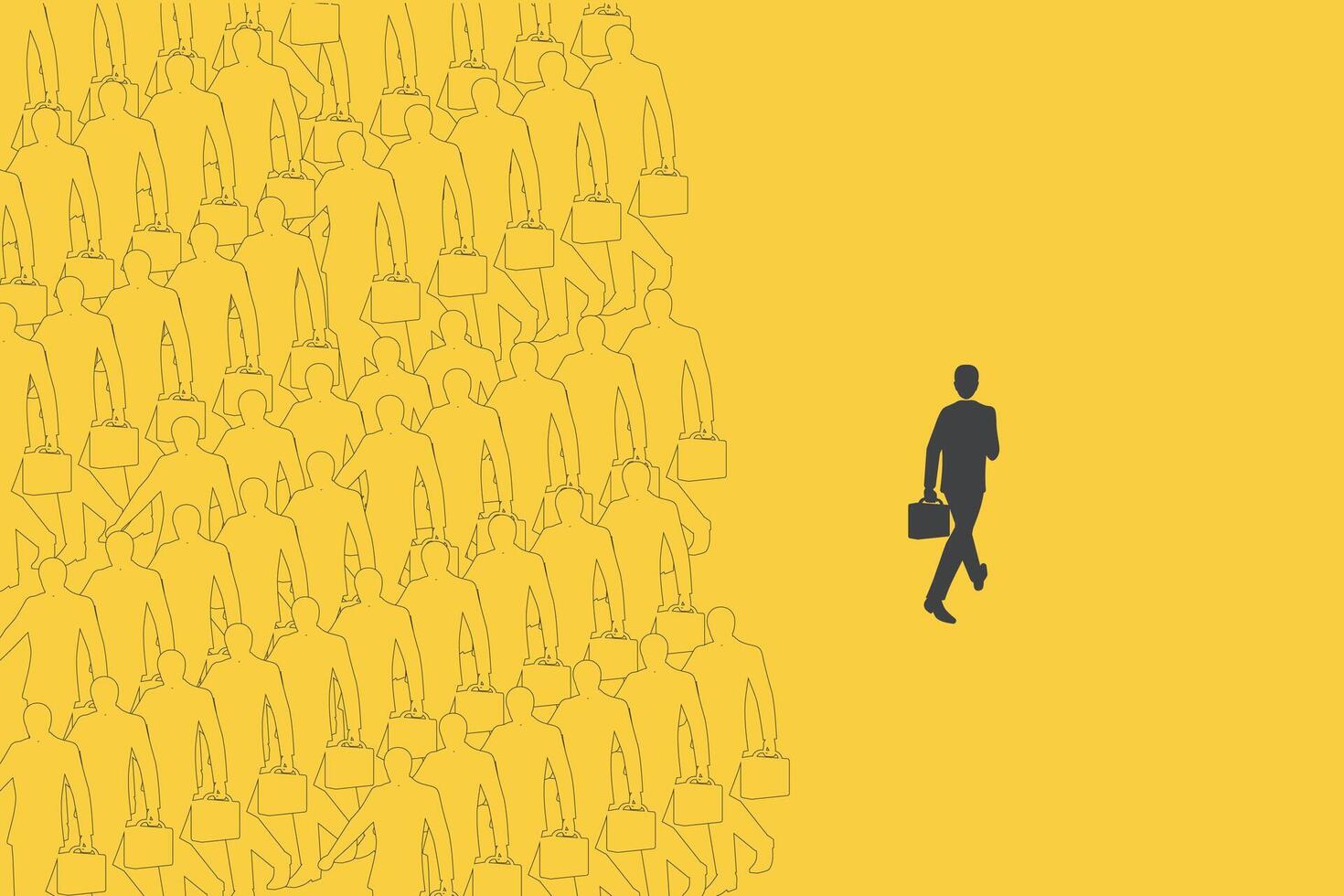 Businessman has to make decision which way to go for his success, Business team or partner go different way, Different or unique Pro Vector