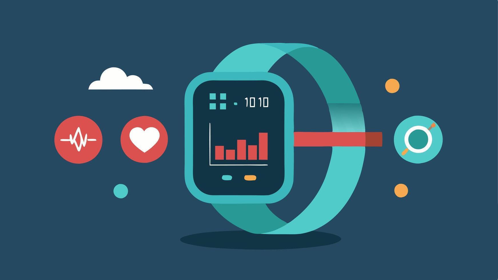 Multifunctional Health Tracker A futuristic wristband combining various health metrics heart rate steps calories and hydration levels with dynamic graphs on the screen.. Pro Vector