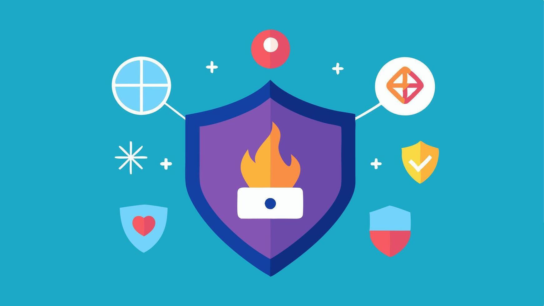 Content Shield A digital shield shaped like a computer screen with icons of harmful content like a flame a broken heart and a warning triangle bouncing off representing strong AI. Pro Vector