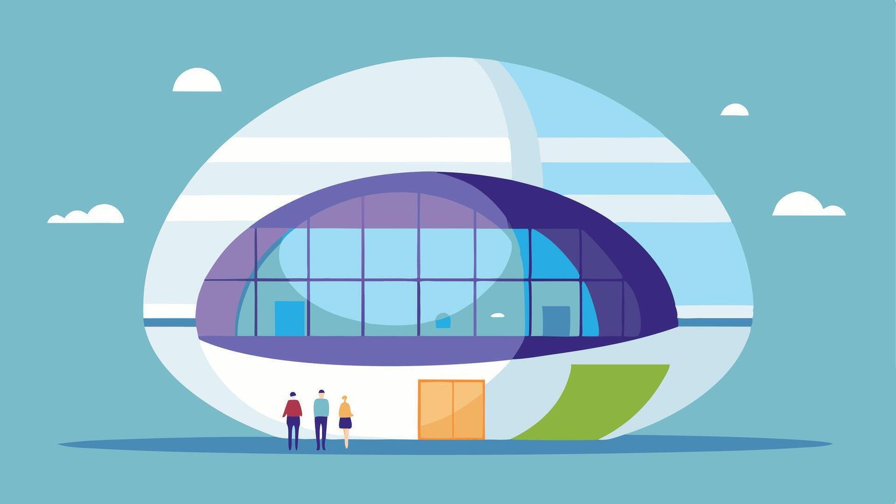 Floating Sphere A large smooth spherical building floats above the ground its surface made of gleaming glasslike material. Large oval windows wrap around the structure allowing. Pro Vector