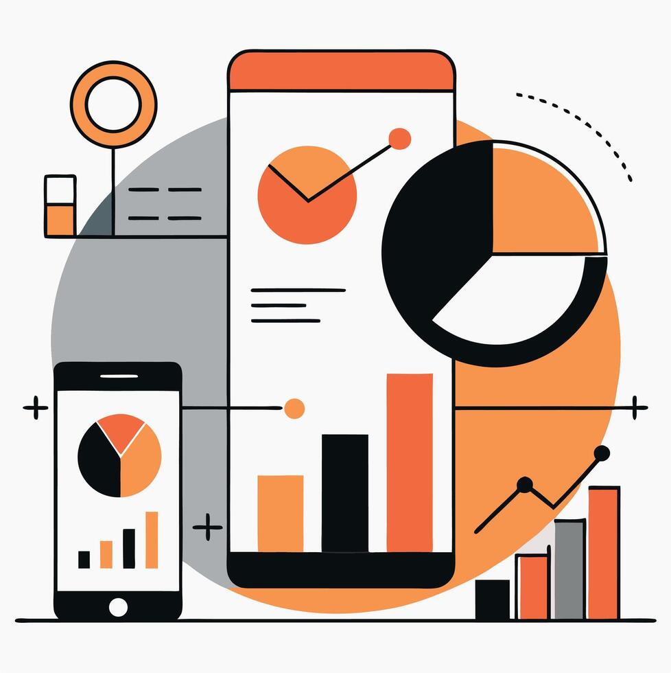 Data Analytics Dashboard On Mobile Devices Showing Chart And Graph Information Pro Vector