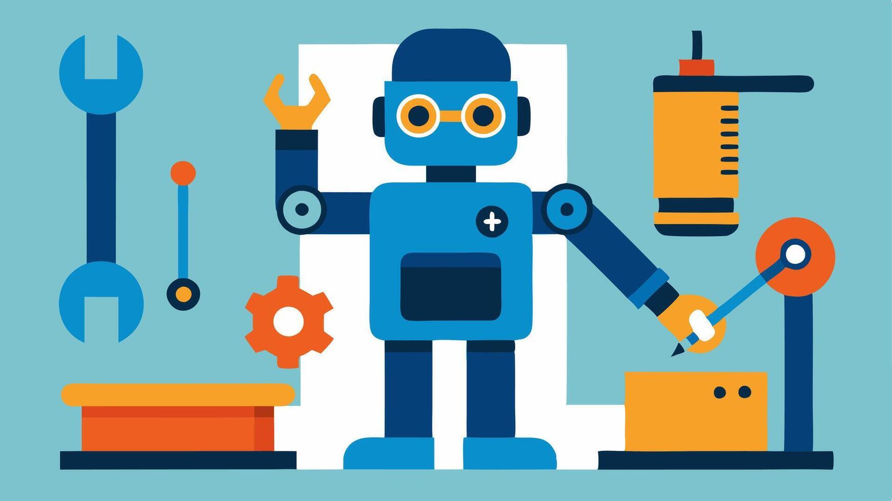 Maintenance Duty Robot A robot performing routine checks on machinery and equipment equipped with diagnostic tools and sensors to ensure optimal performance.. Pro Vector