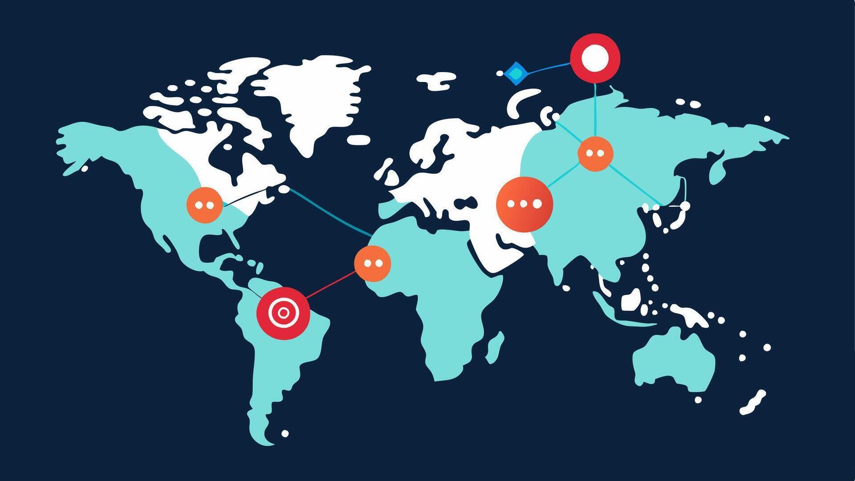 Global Collaboration Depict a world map highlighting connections between different regions with AI data flowing between these regions for shared disaster prediction efforts and. Pro Vector