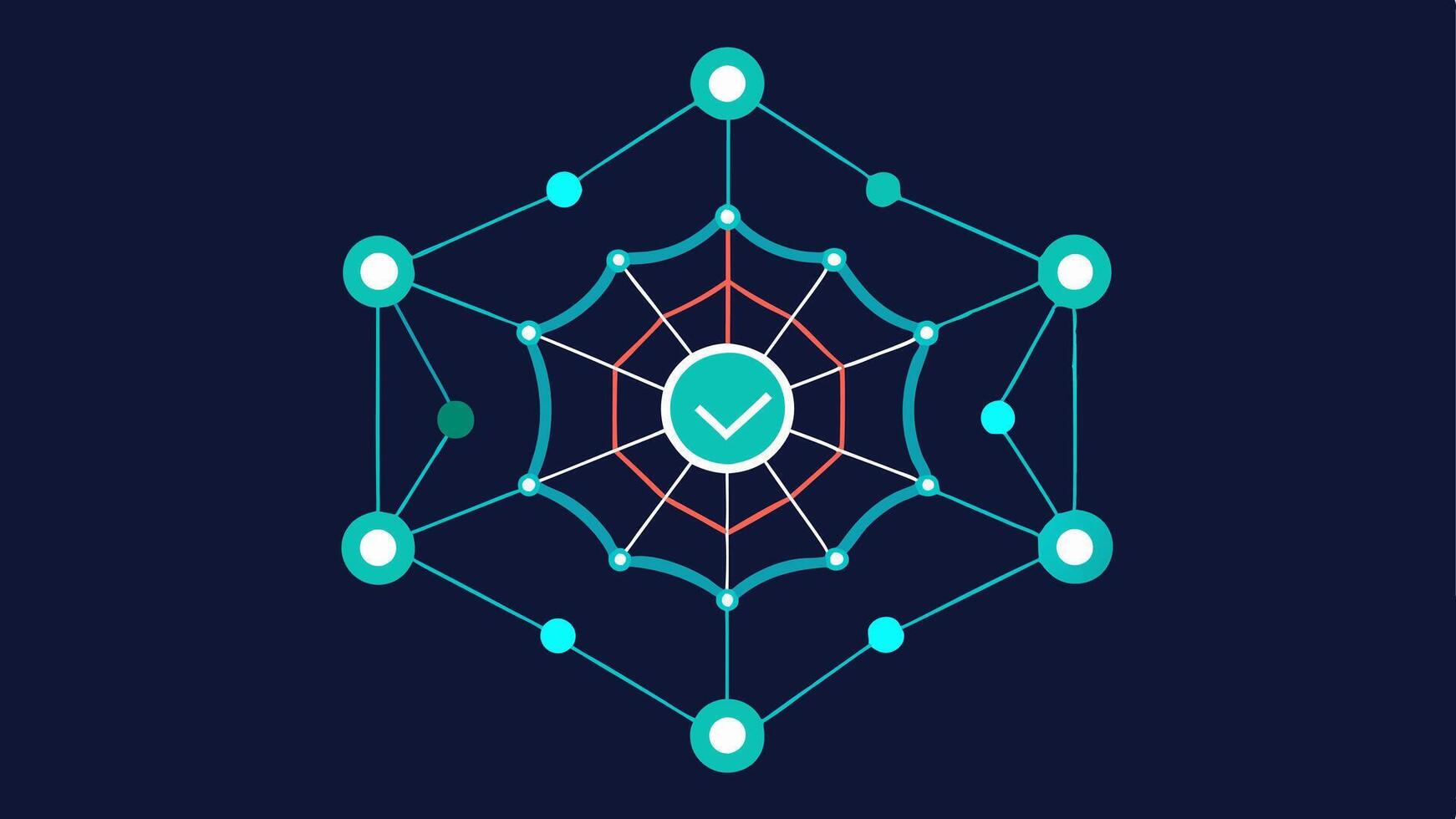 Interconnected Web A spider weblike illustration with nodes at various junctions showing the intricate connections and decentralized nature of the blockchain.. Pro Vector
