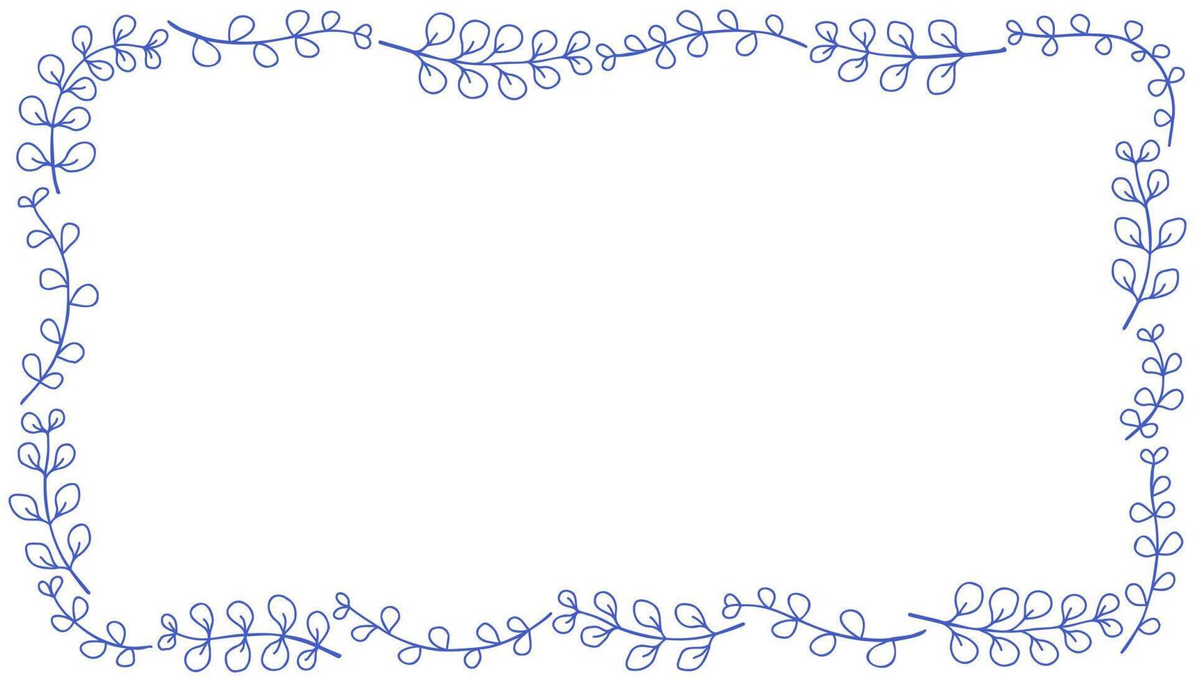Branch rectangular border banner. Leaves and branches rectangular frame floral ornament. Line pattern background. Mediterranean blue outline stroke. line. Pro Vector