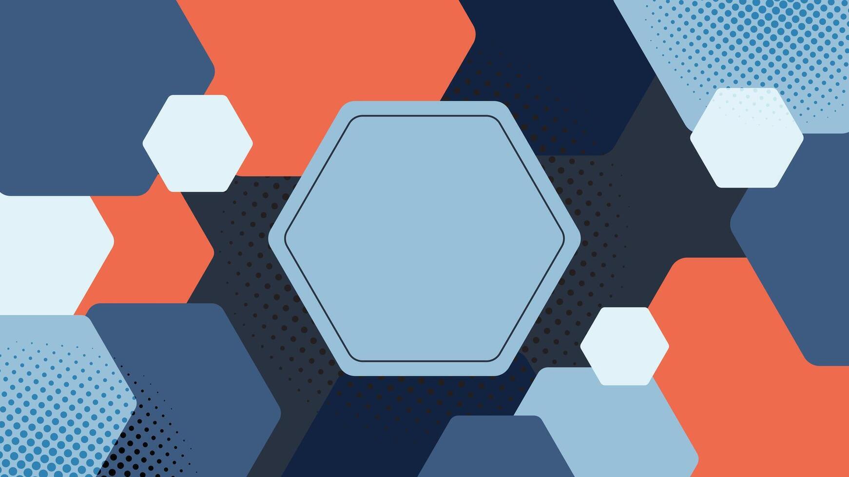 Abstract hexagon background with layered blue and orange shapes ideal for design projects and digital art Pro Vector