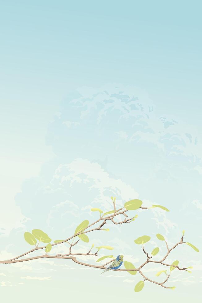 A bird perched on a tree branch with clouds and blue sky vertical background graphic illustration have blank space. Pro Vector